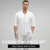 סט שני חלקים אופנתי לגברים, טופ ומכנסיים מכותנה ופשתן