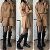 סט שמלת סריג בסגנון קז'ואל קולג' בצבע אחיד (סט סוודר דו-חלקי: חולצה עם שרוולים ארוכים וחצאית מיני)