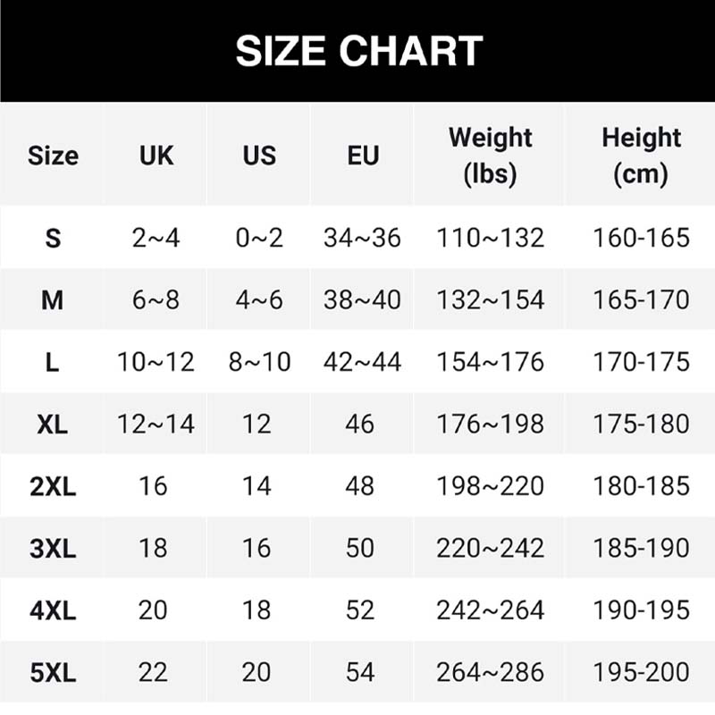 מידות: S, M, L, XL, 2XL, 3XL, 4XL, 5XL