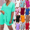 הסט הזה רב-תכליתי, כי את יכולה ללבוש כל חלק בנפרד או יחד כפי שמוצג. השמלה כוללת מחשוף V, טופ קליל עם חריצים בצדדים. החלק התחתון הוא מכנסיים קצרים עם מותן גבוהה וגומי גמיש.